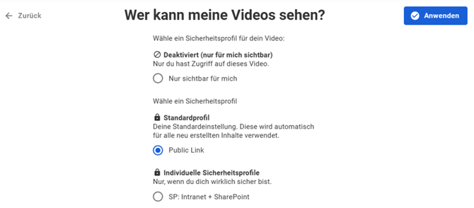 4. Option: Teilen im Videoportal (falls freigeschaltet)